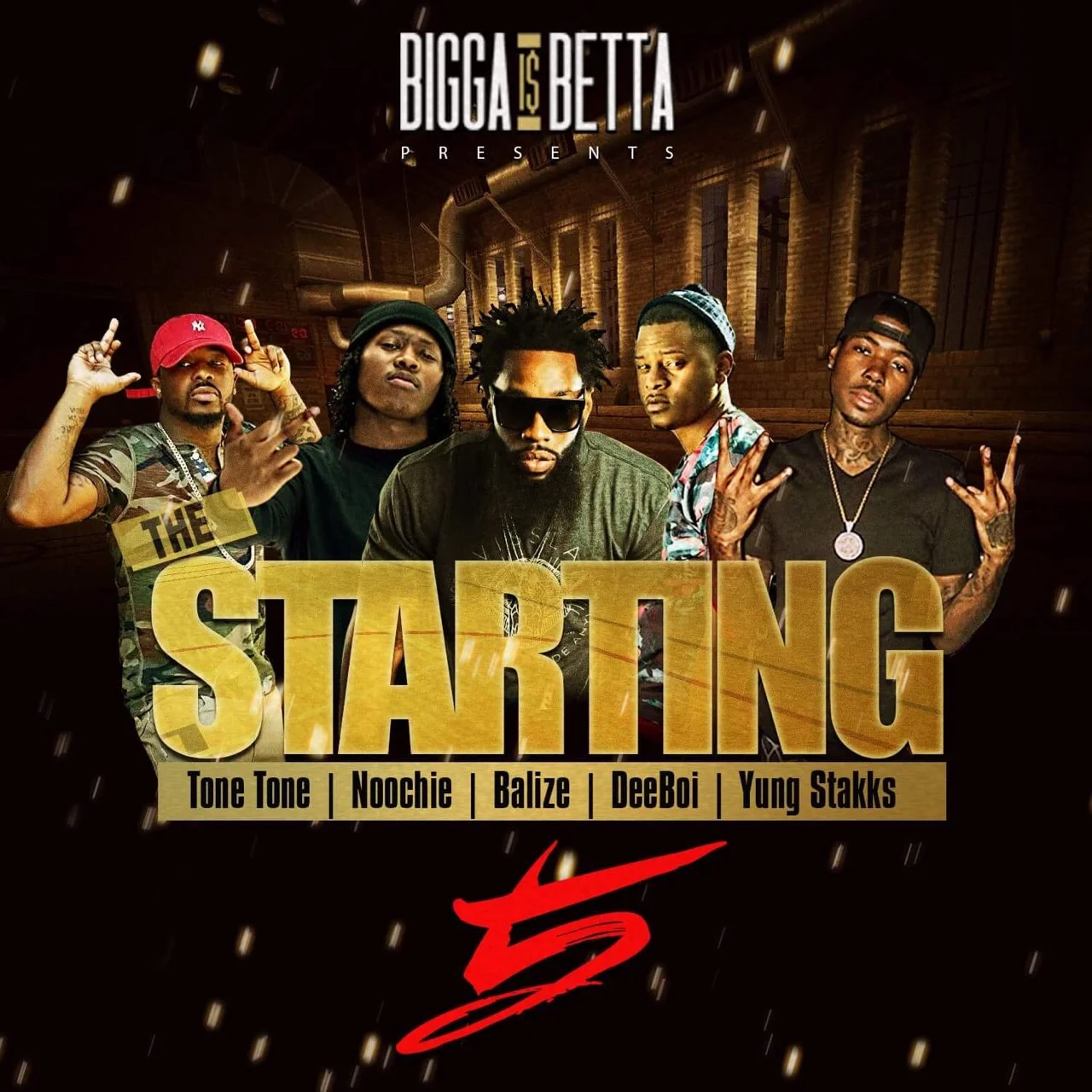 Bigga is Betta presents "The Starting Five" with Tone Tone, Noochie, Balize, DeeBoi, Yung Stakks hosted by Bigga Rankin mixed by DJ Stikuhbush. "The Starting Five" are currently on tour. Keep your eyes and ears glued to the streets for "The Starting Five" in a city near you!!!! For tour information call 770.363.0748