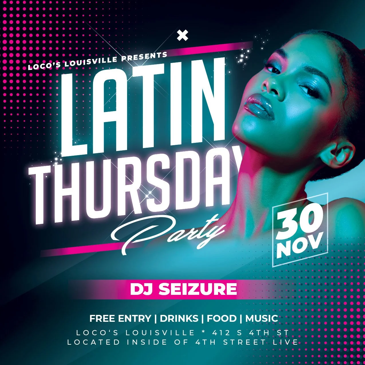 Latin Thursdays at Loco's Thursday, December 7, 2023 10:00 PM Friday, December 8, 2023 2:00 AM Loco's Louisville 412 South 4th Street Louisville, KY, 40202 United States (map) Google Calendar ICS